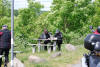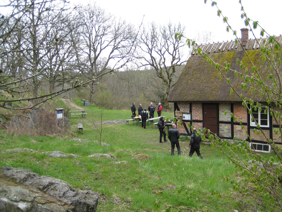 Uppsittning, kort marsch mot massgraven var nästa punkt. Där tog vi fram vår proviant som åts under massgarv vid massgrav Vad jag förstod var detta den perfekta platsen att dumpa lik om man har några som ligger och skräpar. Polisen hade tittat där plus andra tosingar så de var troligen inte pigga på nya utfärder dit och riskera lång näsa. Dessutom massgrav utan lik är en skymf mot den Skånska historien. Evert avtackades för det fina föredraget och vi drog ut på spaning.