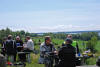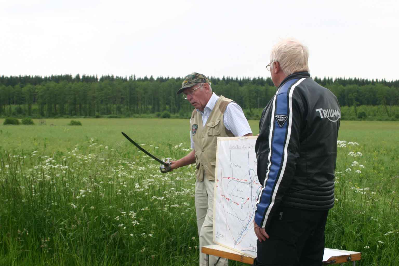 Samling Alestad hos Bitte och Acke. Kaffe och fralla serveras från 9.15. Detta var i korta drag vad som stod på mobiliseringordern som gick ut till samtliga. Plus huvudmålet i kodad form ”Historiens Vingslag”. Susanne och jag lämnade vårt läger med full stridspackning, hjälm, nödproviant och dryck. När vi kom fram bländades vi nästan till andningsuppehåll av en läcker mottagning bestående av goda bullar, pålägg och kaffe. Bitte kan sin historia och vet att mat är det viktigaste för att vinna i krig. Fastän vi var före utsatt tid var flera soldater i full fart med att undanröja bevisen av detta frukostbord och fler anlände efter hand. Vi fick glädjen att se två nya, Mats och Sofia från Spjutstorp. Dryga 20 talet stridsfordon räknade jag till och flera utrustade med akterskytt.