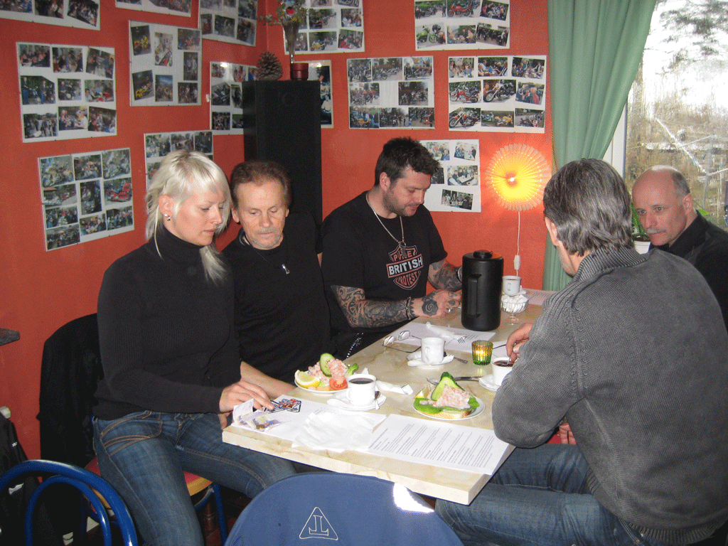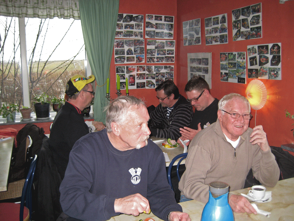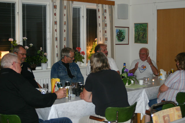 Bitte och Acke kom och sen dök maten upp, kyllingaben och nåt hopkok. Det blev trevligt värre runt bordet och Rolf N. drog en historia om Nortons wankel. Den långa varianten som innehåller kopparbrickan. Ni undrar kanske varför han drog den? Ja fråga honom nästa gång ni träffar honom, se bara till att jag inte är inom höravstånd.