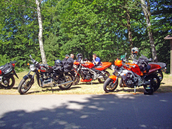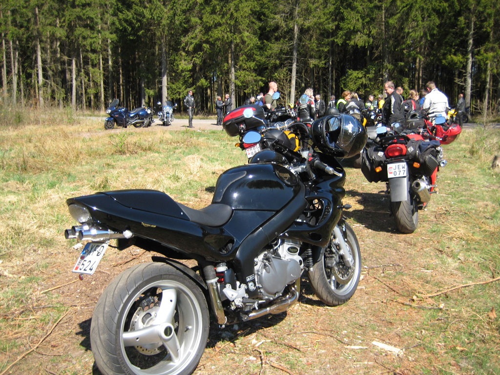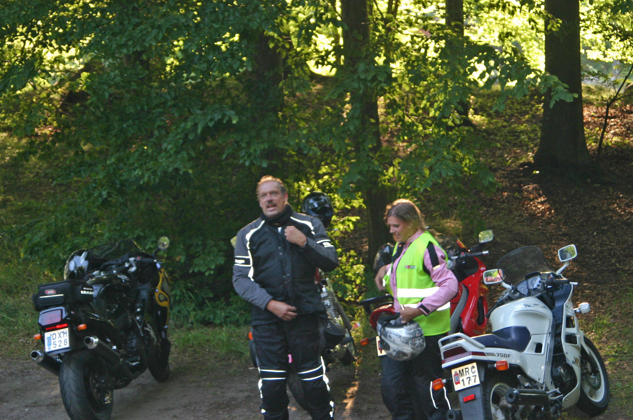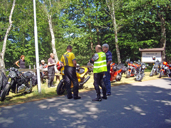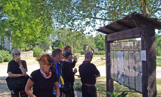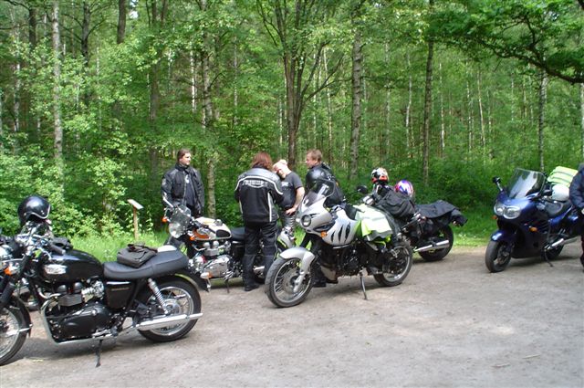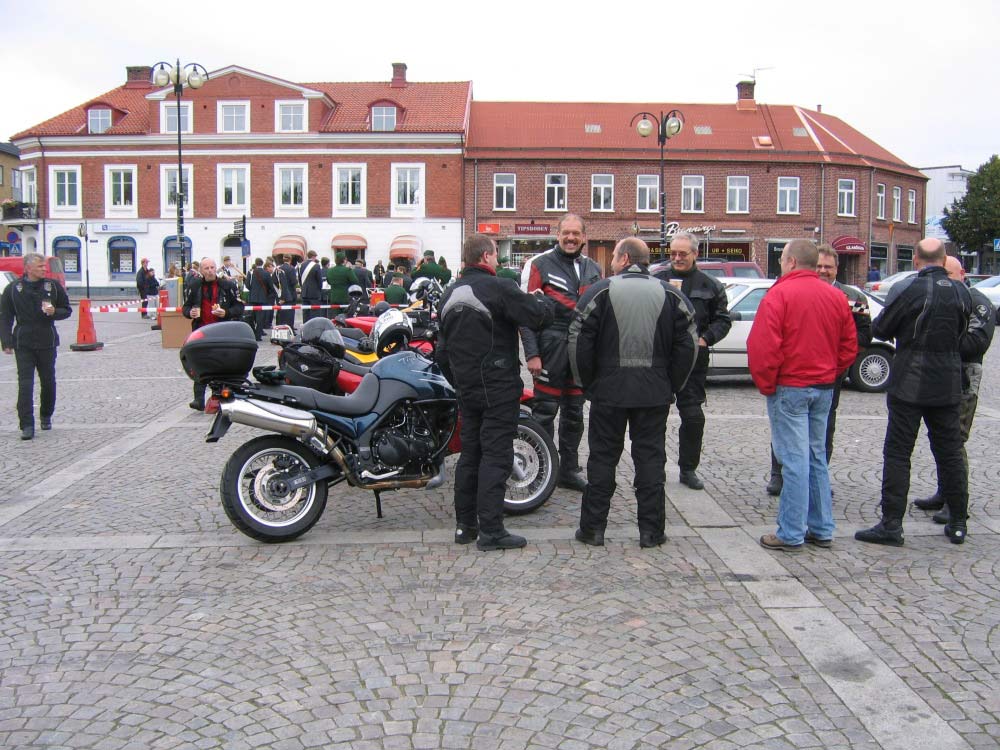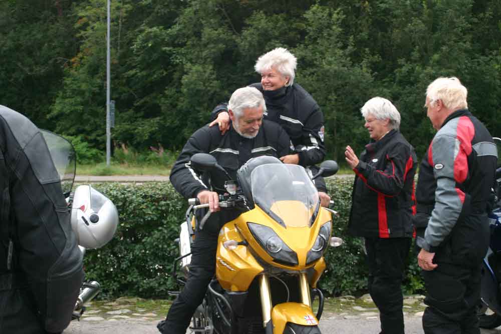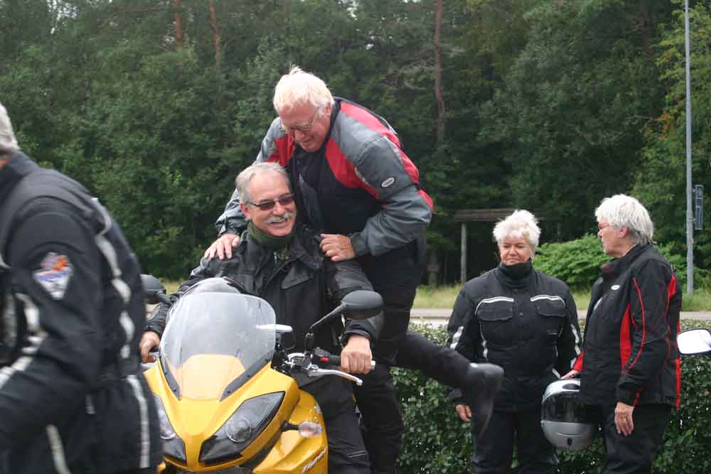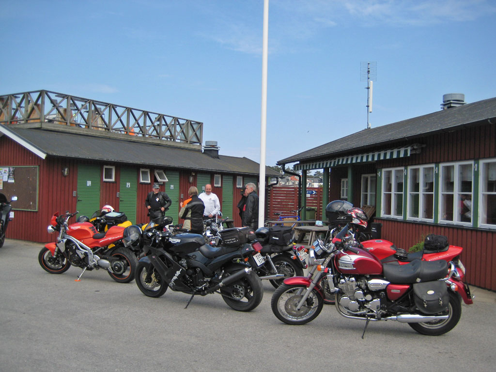 En "Sushi-maskin" dök upp på torget i följe med en riktig motorcykel, men det var dottern till ordförande som övningskörde, så efter maskering blev det godkänt sällskap. Jonny tyckte att vi kunde köra själv dit för han visste ju var Bosarpssjön låg och ville ha ett lägre tempo med dottern.