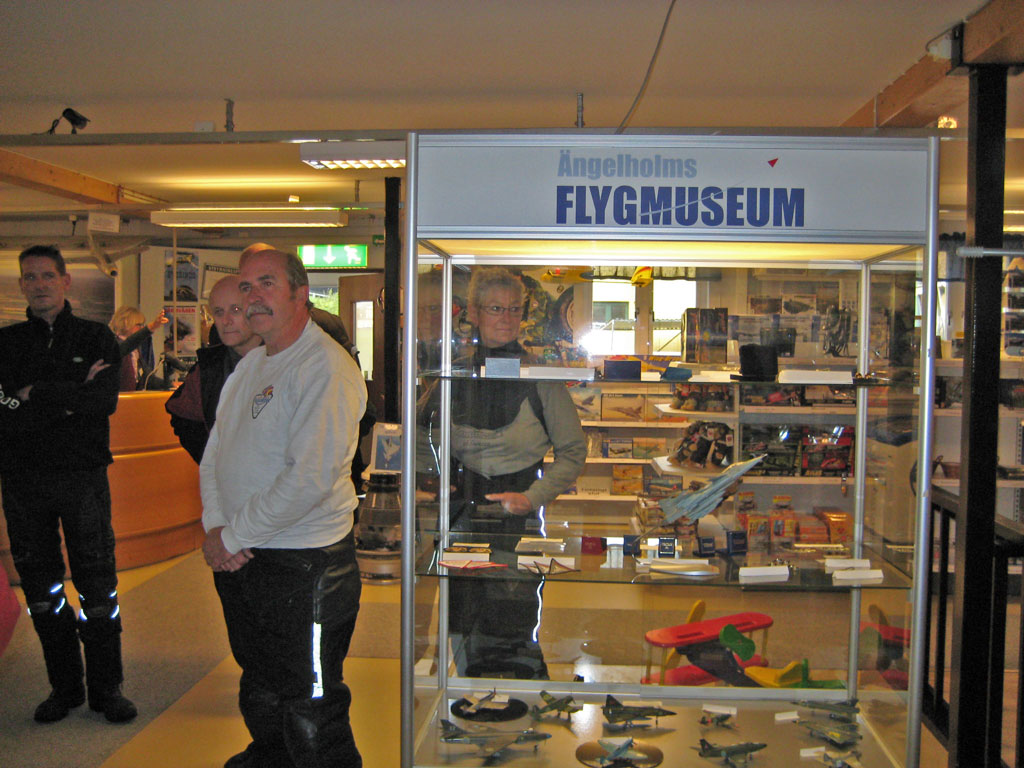 Det hemliga målet var Ängelholms Flygmuseum, vilket nog inte vädergudarna hunnit uppfatta för just som vi parkerade började ösa ner sin förbannelse över oss.