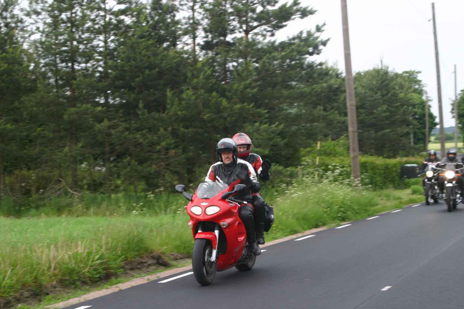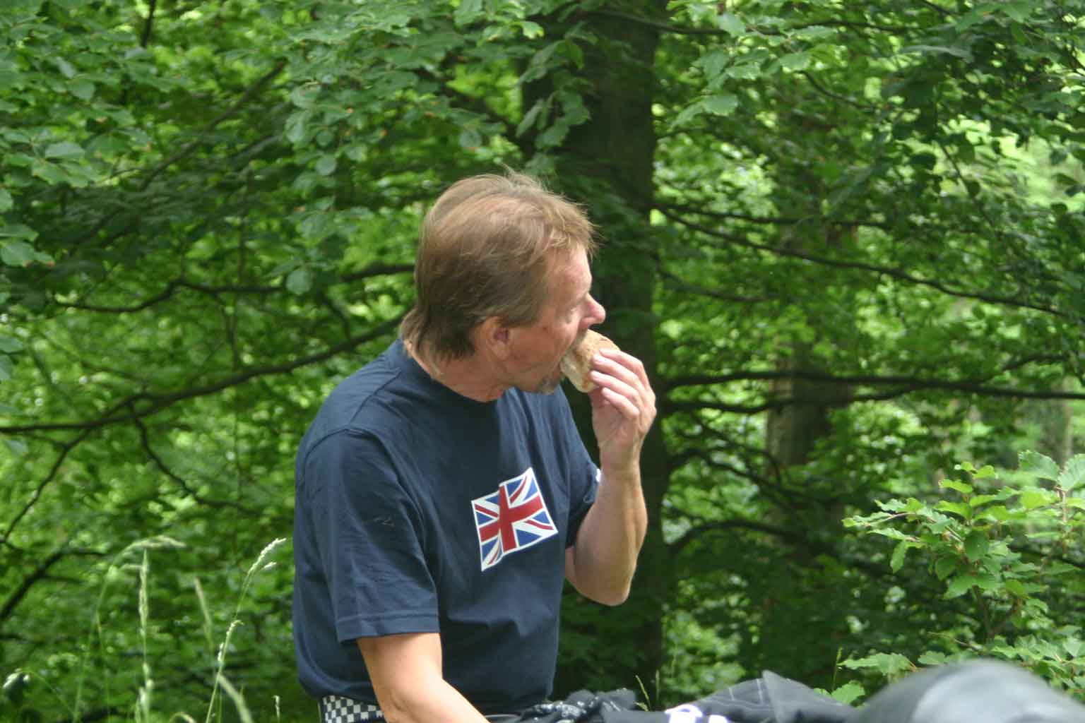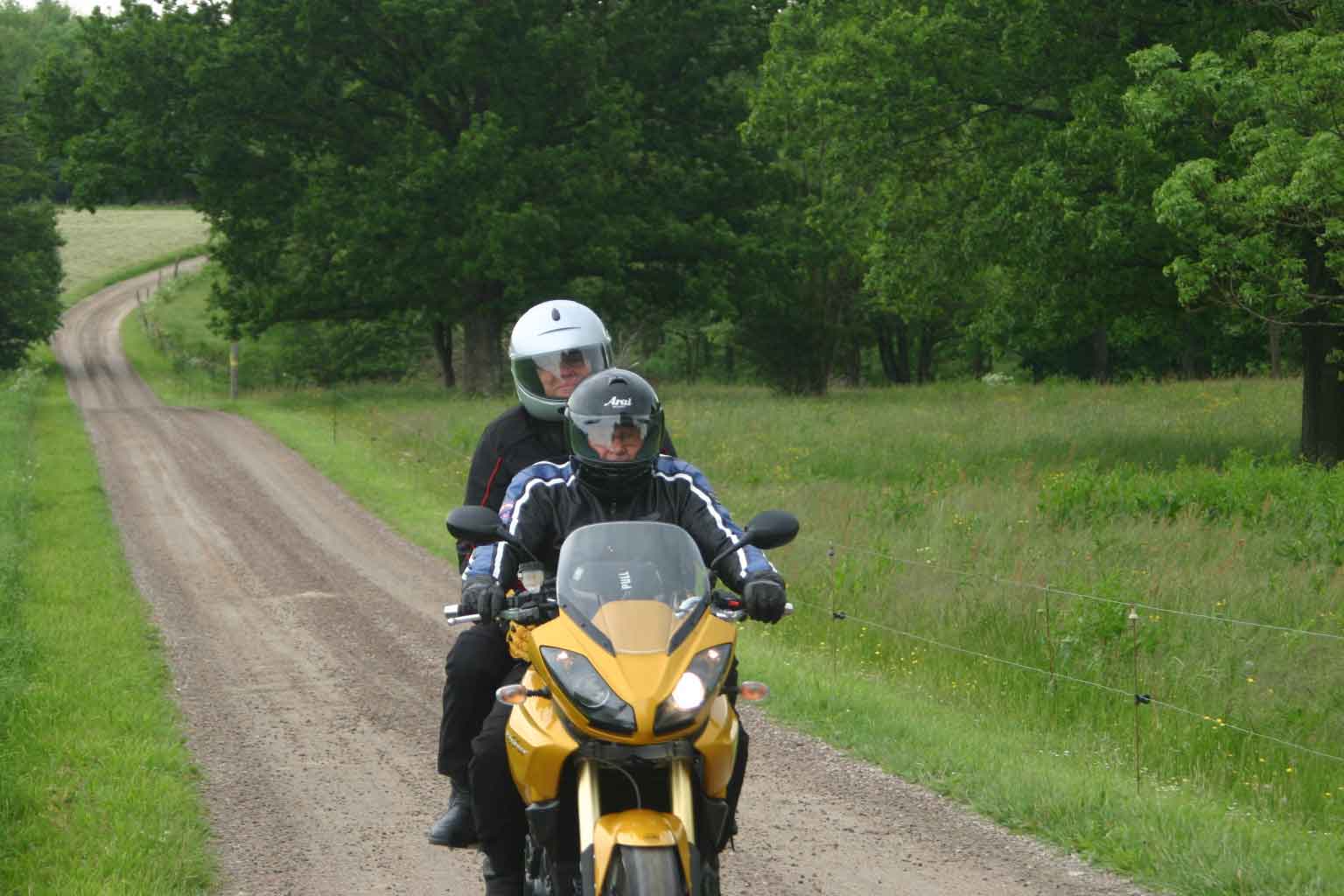 Dick tog ett stadigt grepp om gashandaget han visade igen hur en otroligt duktig mc-vägfinnare agerar. Det när nästan man tror att han har anlagt vägarna själv dagen innan. Det var ren skär fin mc-åkning i gott tempo.