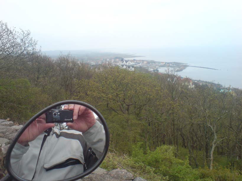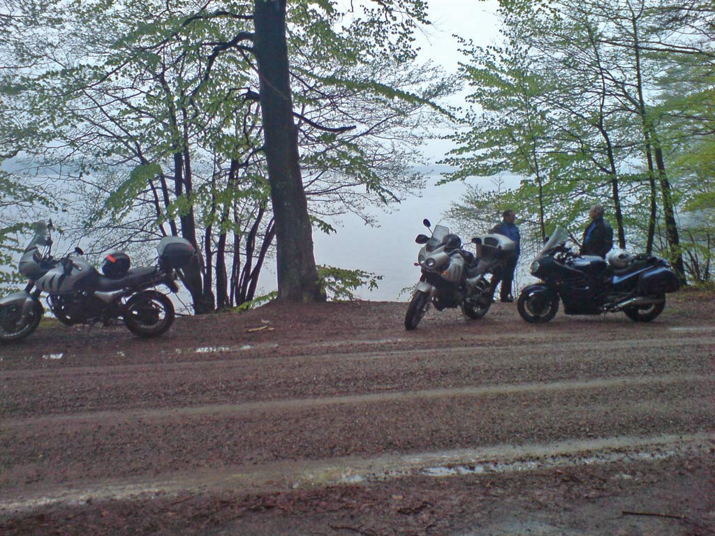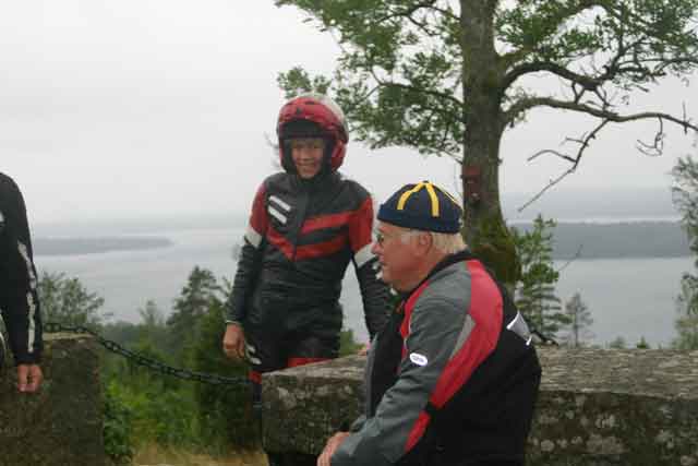 Vid ett stopp med en underbar utsikt över en sjö fick Percy nog. Han pallade inte längre utan tog fram insexnyckeln och gick lös på Rolfs Trophys bakre regioner. Av åkte decibeldödarna som hängde ut där bak. Percy stod inte ut med det fesna ljudet, sån är han. Nu var det slut på regnet och solen kom fram.