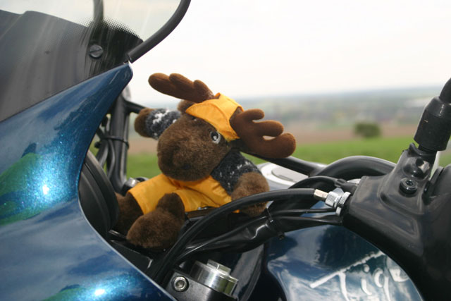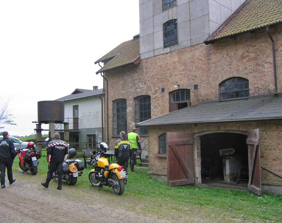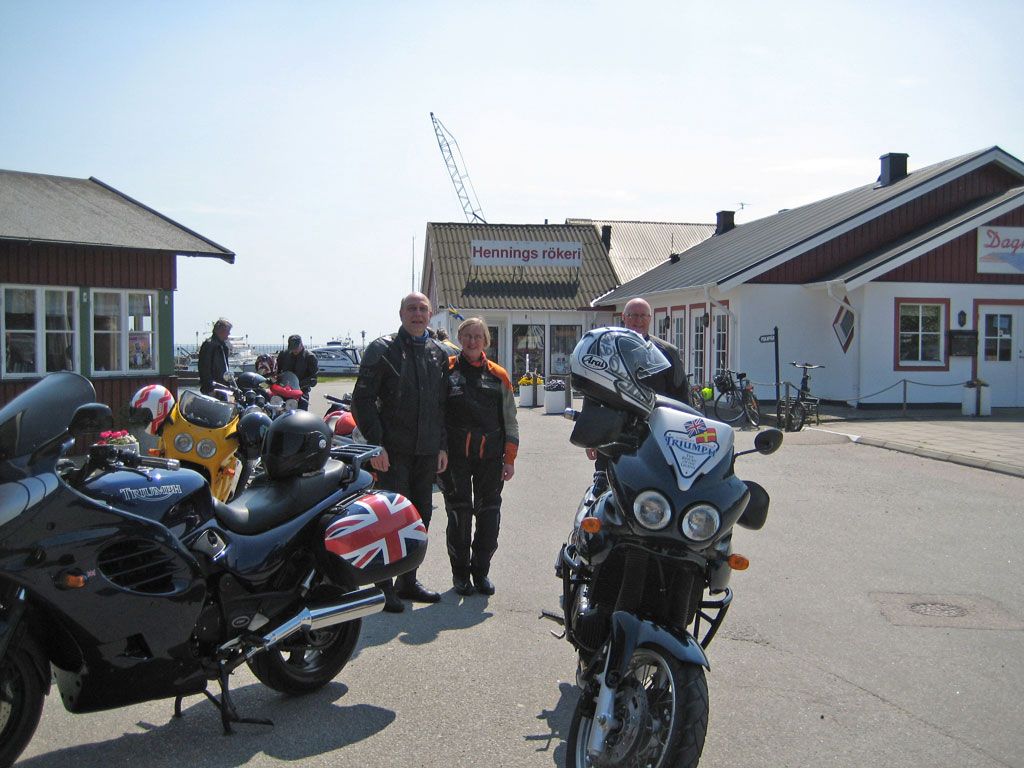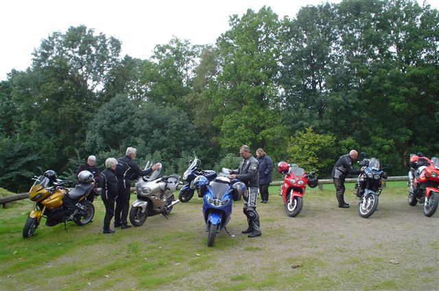 Vi gick och åt frukost på närliggande golfresturang som under natten hade haft TV-tjuvar som gäster. Misslyckade sådana för dom hade inte klarat av det utan dumburken fanns kvar. Ja, som ni märker, det börjar hända saker när Hinckley Skåne är i närheten och vi hade inte ens startat cyklarna. Hans och Anette dök upp och Dick körde iväg oss i ett limbo mellan regn och uppehållsväder. På smala goa vägar med en lagom dos grus.