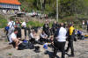 Nu inträffade det oväntade, solen bröt fram och molnen dunstade. Enda molnet var Rolf N. och hans åter sunkiga bakdäck. Han tog beslutade att stanna kvar och bli hämtad av Tommy. Tråkigt att behöva lämna honom, han som alla andra bidrar till vår gemensamma trevnad. Han såg så ensammen ut men som tur var hade han gosedjuret Helge att trösta sig med.
