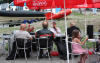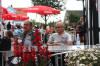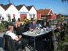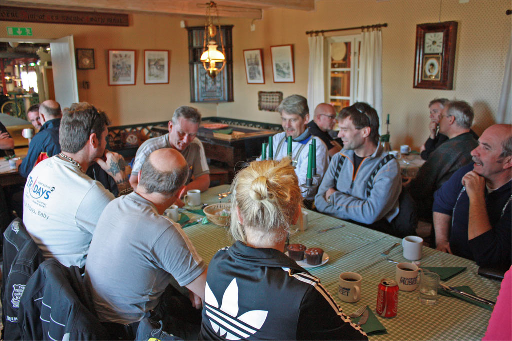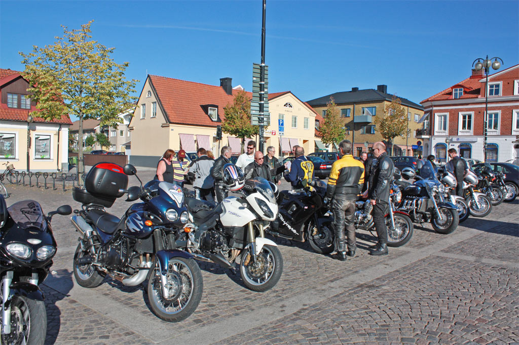 Nästan 20 st. Hinckley-ekipage samlades på Torget i Hörby, och några hade ju kört en stund så fiket fick sälja en massa kaffe och fika innan den långa färden började.