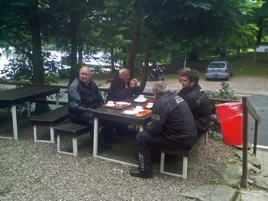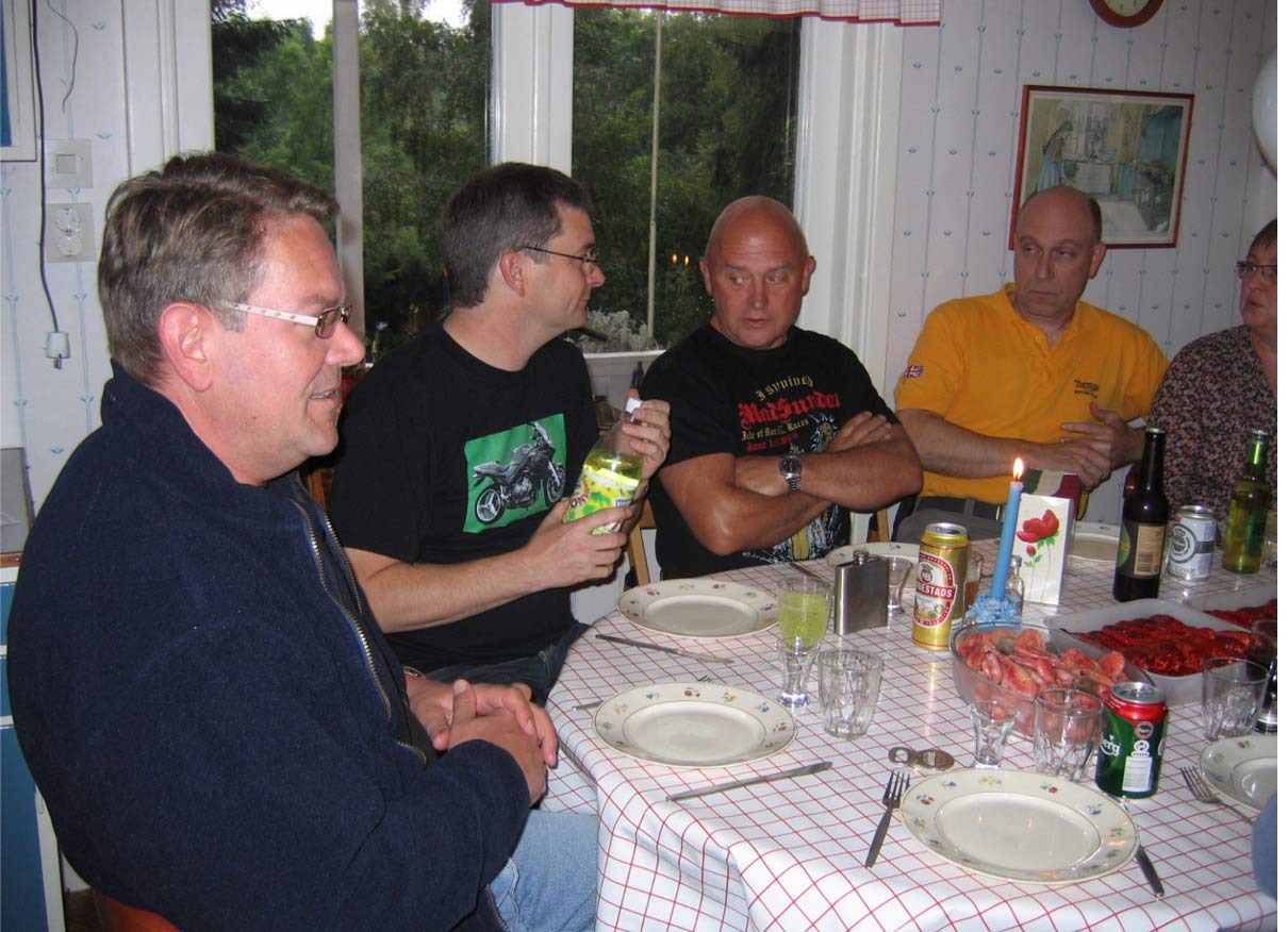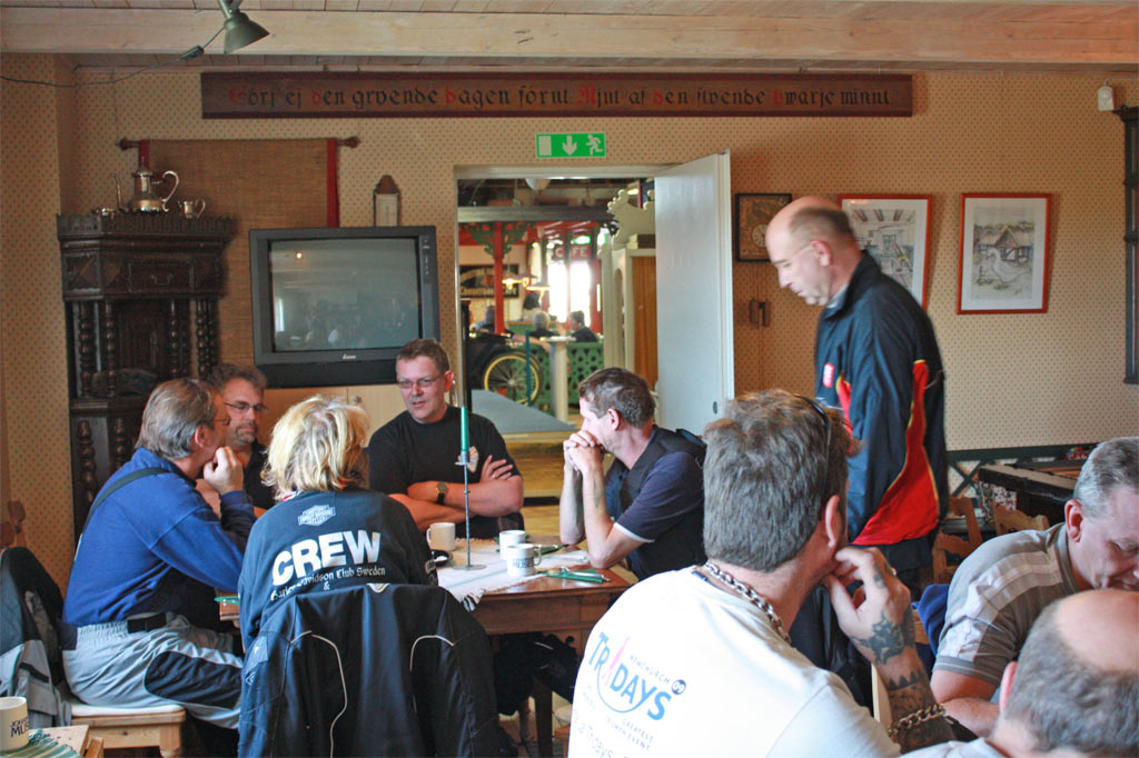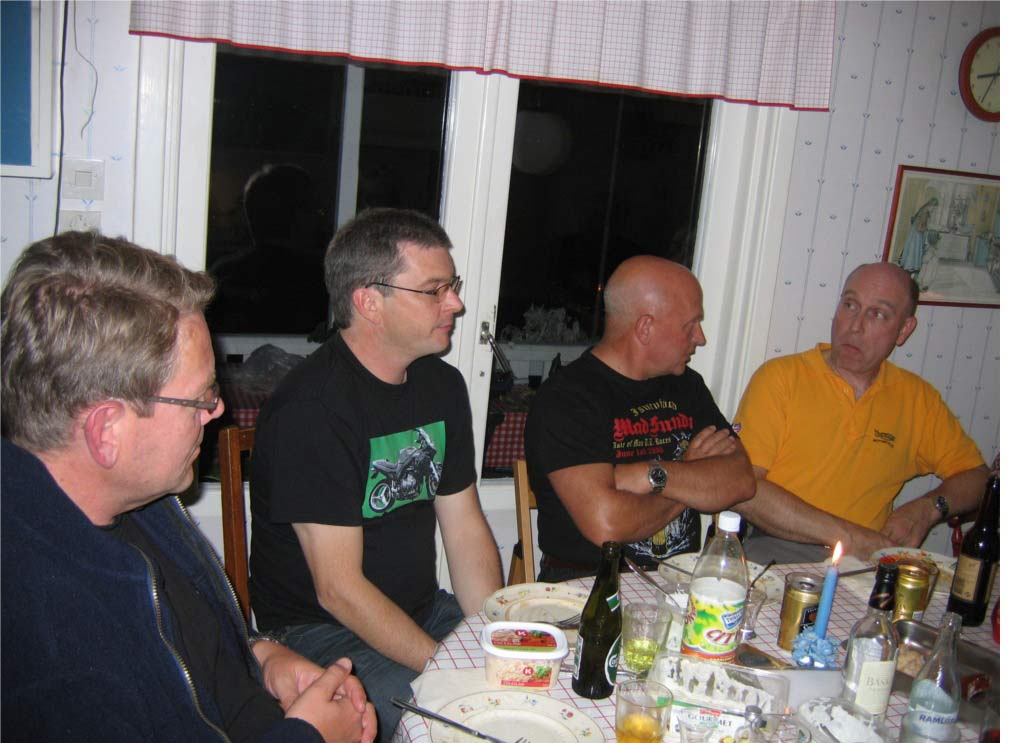 Monica hade vridit till knäet och körde bil, allt för att spara sig och kunna hänga med på lördagen. En bil som hade lastats med öl som Hans bjöd på. Då satte vi gubbar igång det vanliga snacket om haverier, regn soppatorsk och allt annat elände som man kan råka ut för på två hjul.