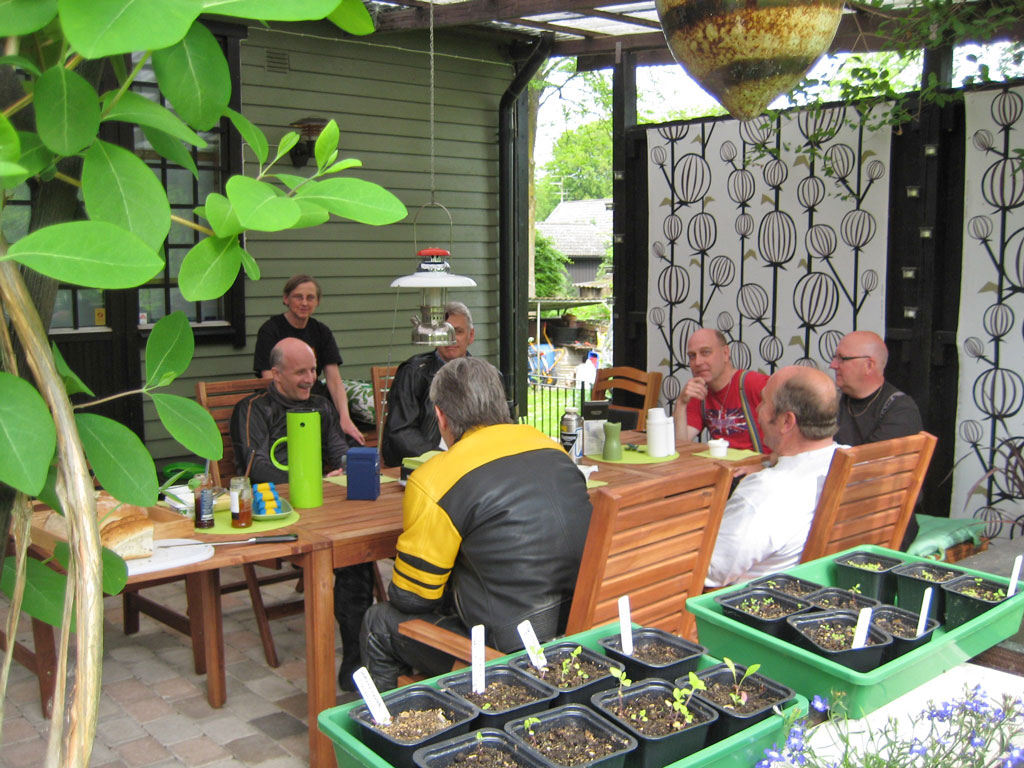 Trots det vackra försommarvädret var det endast 8 stycken som samlades hemma hos Stig och Angela för en fika innan det bar iväg.