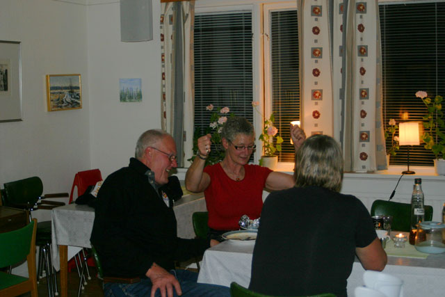 Maten kom och vi satte igång på allvar och ljudnivån steg. Ja det blev grymt livat ännu bättre än kvällen innan vilket jag trodde var omöjligt. Rolf N. körde en repris på wankel historien, ordagrannt från kvällen innan, han glömde inte ens kopparbrickan. Ni kanske har börjat frukta de värsta. Med hänsyn till att detta ligger synligt på nätet så kan det inte avslöjas.