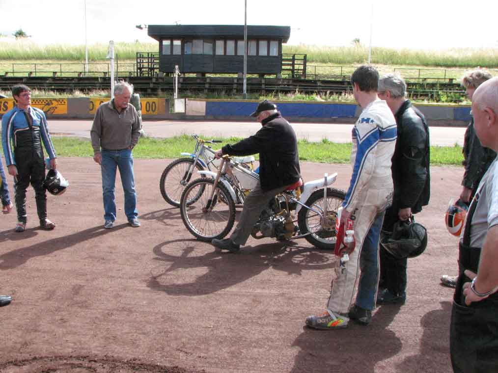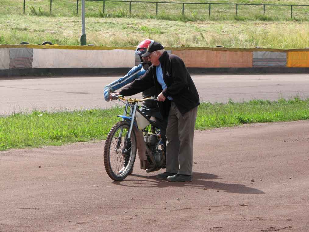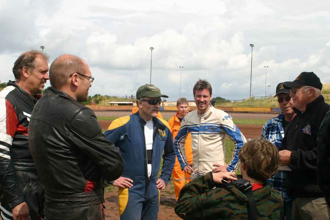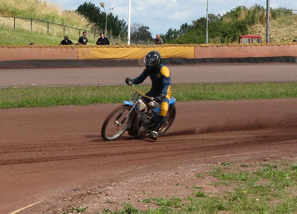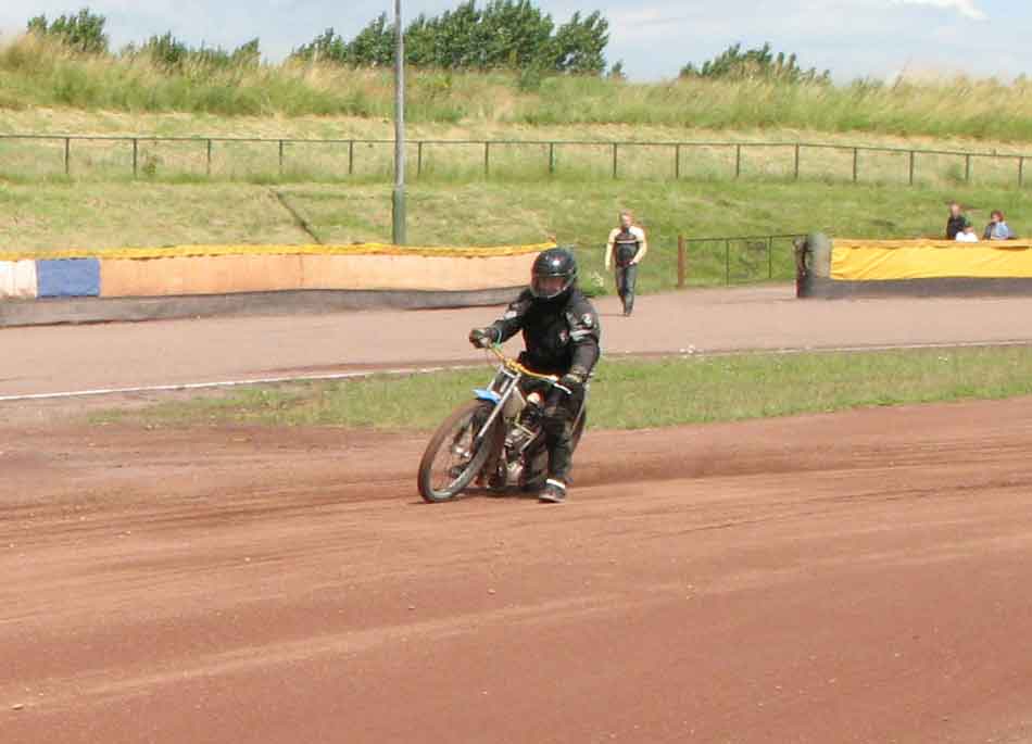 Ett gäng gasglada Hinckley-åkare och några andra entusiaster samlades på Malmö Motorstadion för att pröva på en mc-sport där man kör cykel utan broms (kanske en fördel för undertecknad) och med ständig sladd, vilket av många kan tyckas vansinnigt. Dick instruerade oss i denna konst med budskapet att aldrig släppa på gasen, och det kan ju behövas för oss som normalt kör lite snabbare maskiner än honom och därför får vara lite försiktiga med gashandtaget.