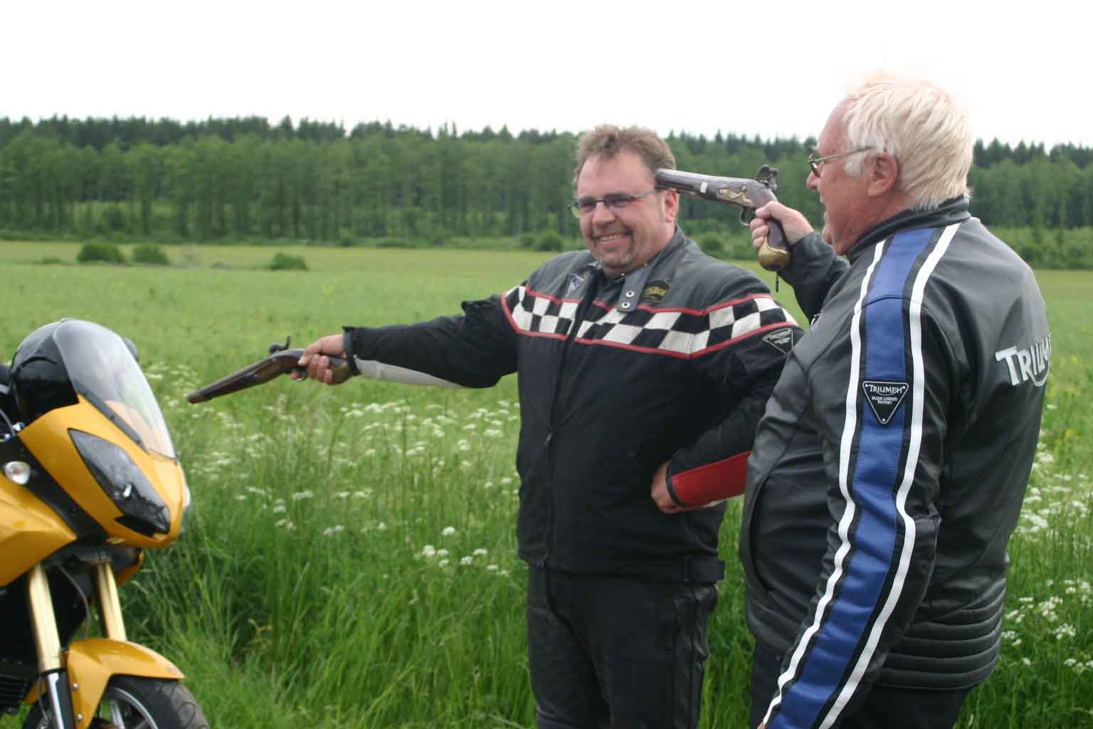 Fälttåget drog vidare och innan Övedskloster skickades Dick och Anita iväg som förtrupp till den hemliga mötesplatsen. Dick med sin kunskap om fi efter vistelse i Småland och Anita som har hand om förståndet, gjorde detta till ett säkert val. Vi leddes rakt in i grönskan på längs grusvägar kantade av grönsaker som högg efter våra ben, som tur var skyddade våra rustningar mot klorofyllförgiftning. Där mitt i ingenstans som kallades Borst stod Evert med en karta. Evert började en saftig berättelse där lede fi, svenskarna 1644 slaktade på det värsta grymmaste sättet de tappra modiga Färsingarna. Han förevisade även ett par gamla pistoler och det tände Tommy. Han kom troligen ihåg uttrycket "En Svensk Tiger" från senaste kriget och såg i Dicks nya gula Tiger en lämplig svenne moppe att avliva. Dick var dock av annan åsikt och tryckte den andra pistolen mot Tommys huvud, ovanligt hänsynsfullt av Dick att välja ett ställe där en skottskada knappast skulle märkas. (se bild)