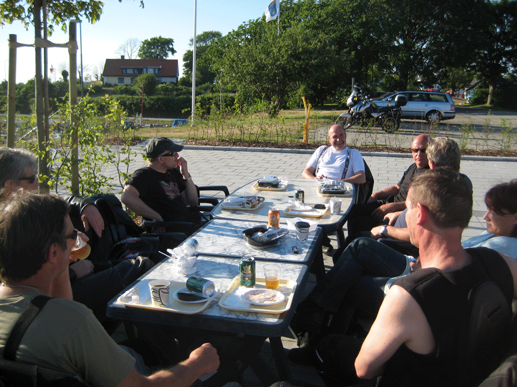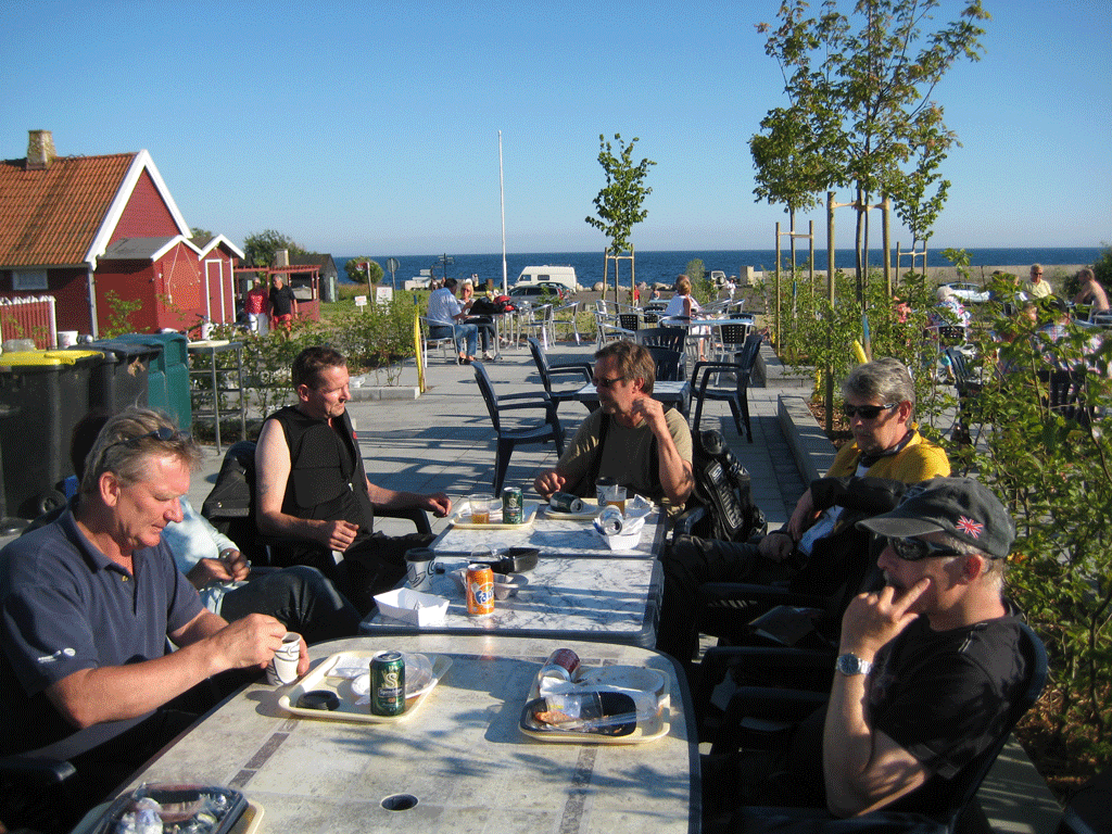 Vi körde längs underbara vägar i sydost utan att se någon svensk aktivitet som behövde bekämpas. Efter en stund delade Bitte upp gruppen i tanknödiga och icke. De nödiga körde iväg och när vi anlände till Rönåsrasten hade det gänget tagit fullständigt befäl över stället. De snaskade huvudrätt (Dansk fläskstek såklart), dessert och hånade oss som inte ens fick se menyn. Precis det uppträdande man kan förvänta sig av det gänget.